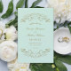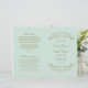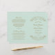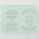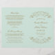 Nadarias decorativas e floresces enquadram esta elegante vintage inspirou a design do programa de cerimônia de casamento. Fundo verde de menta pastel com design de ouro antigo. Personalize o texto personalizado da sua festa noiva, informações sobre cerimônia e mensagem de obrigado. Nota: esses programas de papel de peso de texto chegam achatados e exigem a dobragem para montagem.
