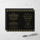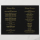 Folhetos de cerimônia de casamento art déco elegantes e glamorosos inspirados no estilo Gatsby vintage ornamentado e os loucos anos 20. Cor de fundo preta com design dourado. Personalize o texto personalizado para sua festa de casamento, informações da cerimônia e mensagem de agradecimento. Nota: estes programas de papel de peso de texto chegam planos e exigem dobragem para montar.