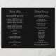 Programas elegantes e glamourosos de cerimônias de casamento inspirados no estilo antigo de arte deco e nos anos 20 ruidosos. Cor de fundo preta com design prateado/cinza. Personalize o texto personalizado da sua festa noiva, informações sobre cerimônia e mensagem de obrigado. Nota: esses programas de papel de peso de texto chegam achatados e exigem a dobragem para montagem.