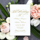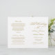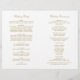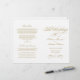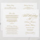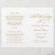 A grandiosa caligrafia dourada antiga escreve "O Casamento De" em rasgo ornamentado e elegante através deste programa de cerimônia. Floreios decorativos em dourado quente enquadram o design em um fundo branco limpo para um visual atemporal e formal. As páginas internas são totalmente personalizáveis para sua festa de casamento, ordem da cerimônia e uma mensagem pessoal de agradecimento na contracapa. Os programas são impressos em papel de peso de texto e chegam planos, exigindo uma simples dobra no centro.