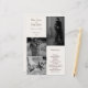 Crie uma primeira impressão significativa do seu casamento com este elegante programa de casamento de colagem fotográfica. O design apresenta um layout contemporâneo com uma paleta monocromática que adiciona sofisticação e timeless. O convite é adornado com um trio de fotos que capturam momentos de amor e conexão, perfeitos para compartilhar fotos de noivados ou casais. Apresenta também os detalhes do casamento em formato limpo e refinado, usando uma combinação equilibrada de uma fonte de script para os nomes do casal e um serif clássico para os detalhes do evento. Este na moda apresenta uma mistura harmoniosa de elementos design modernos e elegantes, fazer ideal para casais que querem um toque personalizado, mas polido, para a papelaria do casamento. nota: substitua a foto por suas fotos da sessão de fotos do casamento. M002