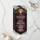 Programas de Casamento de Jarro de Pedra com Girassóis - apresentam um fundo de madeira de celeiro vermelho escuro aparado com renda e decorado com luzes cintilantes de corda de cor quente. O design também apresenta um buquê de girassóis dentro de um jarro de pedra que você pode personalizar as iniciais para as de sua escolha.