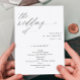 Esses programas de casamento de design minimalistas elegantes e modernos apresentam caligrafia simples e elegante, combinada com uma simples fonte serif. Esses programas de casamento 5x7 são planos com frente e verso. A sua festa de casamento e obrigado está no verso. Ver peças correspondentes nesta coleção de casamento.