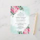 Design apresenta pedônia floral de cor d'água e elementos rosa em tons de rosa com eucalipto verde. Design também apresenta salpicos de aquarela em tons verdes claros ou de menta.