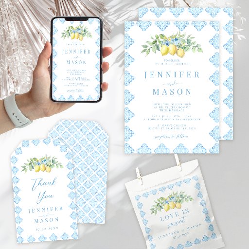Mediterranean Blue Tiles Lemon Coastal Wedding Criado por Ramune Freze