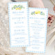 Mergulhe na elegância charmosa dos nossos cartões temáticos do programa de casamento italiano-mediterrânico, cuidadosamente elaborados. Apresentando intrincado quadro azul de azulejo e ramos de limão com flores brancas e brancas em cima, estas cartas de programa elevam a sofisticação da celebração do casamento. Adicione um toque botânico natural ao seu dia especial com estas cartas cativantes, perfeito para melhorar o charme do seu casamento inspirado na boêmia.