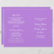 Programa de casamento elegante e lavanda púrpura e prata com decoração de flores. Por favor, anote - esses programas de casamento chegam em plano e exigem dobradura.