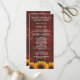 Country Red Wood Rustic Sunflower Wedding Programs - apresenta um fundo de madeira vermelha aflita com girassóis no fundo. A parte traseira tem o mesmo design.