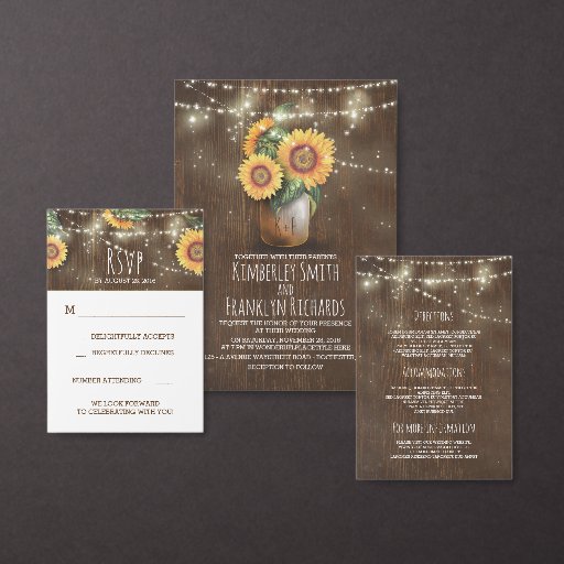 Rustic Sunflower Mason Jar Wedding CollectionCriado por Jinaiji Custom Invitations