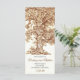 programas de casamento elegantes, castanho e branco, com carvalho velho e iniciais de forma cardíaca no porta-malas. O programa de casamento da Trendy Perfeito para casamento rústico no campo ou jardim.