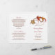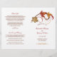 Folhas de outono coloridas pairam graciosamente ao lado de um requintado trabalho de pergaminho neste programa de cerimônia de outono rústica. "Casamento de" aparece em escrita refinada, enquadrando seus nomes e detalhes do casamento em um fundo branco limpo com sotaques de folhas em vermelho, dourado e cobre quentes. As páginas internas são totalmente personalizáveis para sua festa de casamento, ordem da cerimônia e uma mensagem pessoal de agradecimento na contracapa. Os programas são impressos em papel de peso de texto e chegam planos, exigindo uma simples dobra no centro.