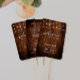 Este leque de programa de casamento rústico apresenta um fundo quente de madeira com luzes de corda suavemente brilhantes, criando uma atmosfera aconchegante e elegante. A combinação de letra manuscrita e fontes sans-serif adiciona um toque sofisticado, tornando-o perfeito para casamentos em celeiros, ao ar livre ou em estilo country. A frente dá as boas-vindas aos convidados com os nomes do casal e a data do casamento, enquanto a parte de trás fornece um esboço da cerimônia e detalhes da festa de casamento organizados de forma linda. Anexado a uma alça de madeira por praticidade, este leque duplica como um charmoso souvenir e um acessório funcional para celebrações em clima quente, garantindo que os convidados permaneçam confortáveis enquanto acompanham os eventos do dia especial.
