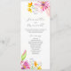 Estes elegantes programas de cerimônia de casamento exibem flores de aquarela em tons de rosa e laranja com sotaques de lavanda. Use os campos modelo para adicionar sua ordem de serviço. A placa se reverte para uma cor complementar sólida. Uma escolha boho, porém botânica, para casamentos de jardim com um tema de flor silvestre. Arte exclusiva e design por Victoria Grigaliunas de Do Tell A Belle.