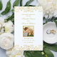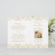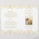 Os programas de cerimônias de casamento inspirados na Elegante White Vintage apresentam um design decorativo de ornamentado com uma aparência de um shimmer de ouro em champanhe. Personalize a foto personalizada e o texto da sua festa noiva, informações sobre cerimônia e mensagem de obrigado. Nota: esses programas de papel de peso de texto chegam achatados e exigem a dobragem para montagem.