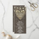 Programas de Casamento de Árvores de Carvalho Esculpidas Rustas - exibem as luzes de cordas sobre um fundo de carvalho esculpido. Consulte a coleção de correspondência de cheios neste design.