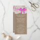 A coleção de arcos rosa rústica é um design com um adorável fundo de efeito de burlap rusticado com um romântico de efeito de renda branca vintage e um arco rosa espantoso. Esses programas podem ser personalizados para sua ocasião especial e fariam a modelo perfeita para casamentos, chás de panela, festas de noivado, festas de aniversário e muito, muito mais. Note que o Zazzle só vende produtos impressos para que este item não tenha qualquer material real de burlap, rendas ou fita/ arco. EXIBIR ITENS CORRESPONDENTES PARA ESTA COLEÇÃO