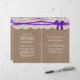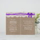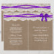 A coleção de casamento do arco Roxo é uma design impressionante que apresenta um adorável fundo de efeito de burvolta rústica com um romântico de efeito de renda branca vintage e um espantoso arco roxo. Esses programas podem ser personalizados para sua ocasião especial e fariam a modelo perfeita para casamentos, chás de panela, festas de noivado, festas de aniversário e muito, muito mais. *Observe que o Zazzle só vende produtos impressos para que este item não tenha nenhum material real de burlap, rendas ou fita/ arco.