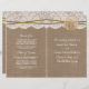 A coleção de casamentos de areia rústica de praia é um design impressionante que apresenta um adorável fundo de efeito de burlap com romântico com efeito de renda branca vintage, terminada com um incrível dólar e fio de areia. Esses programas podem ser personalizados para sua ocasião especial e fariam a modelo perfeita para casamentos, chás de panela, festas de noivado, festas de aniversário e muito, muito mais. *Observe que o Zazzle só vende produtos impressos para que este item não tenha nenhum material real de arromba, renda, dólar ou fio.