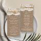 A coleção de casamentos de areia rústica de praia é um design impressionante que apresenta um adorável fundo de efeito de burlap com romântico com efeito de renda branca vintage, terminada com um incrível dólar e fio de areia. Esses programas podem ser personalizados para sua ocasião especial e fariam a modelo perfeita para casamentos, chás de panela, festas de noivado, festas de aniversário e muito, muito mais. *Observe que o Zazzle só vende produtos impressos para que este item não tenha nenhum material real de arromba, renda, dólar ou fio.