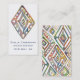 Cartão de visita de designer geométrico com formas coloridas de diamante. Layout vertical com prisma na frente e padrão geométrico no verso. Personalize com seu nome, título e detalhes de contato.