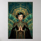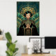 Uma homenagem impressionante à Era de Ouro do Cinema. Esta obra-prima apresenta uma silhueta detalhada de um projetor de filme vintage sobre um monumento Art Deco escalonado. Banhada por um brilho dourado radiante e emoldurada por arcos geométricos azul turquesa intrincados e estrelas celestes, esta obra de arte incorpora o glamour de um palácio de cinema dos anos 1920. Ideal para cinemas em casa, salas de mídia ou como um presente de luxo para cinéfilos e diretores.