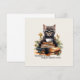 Entra na estação de trás para a escola com a legal confiança de um gato! O cartão de saudação 'Incrutável como um Gato, Pronto para a Escola como um Chefe' apresenta um gato preto na moda, saltando com confiança em frente a pilhas de livros e a uma xícara de café. Combinando humor, charme e determinação, esta design é perfeita para estudantes e amantes de gatos que lidam com desafios com estilo e poesia. Peça a sua agora!