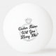 Faça a pergunta de uma forma divertida e inesperada com esta bola de pingue-pongue personalizável com um desenho de aliança de noivado e texto personalizado. A mensagem padrão é "Você aceita se casar comigo?", mas todo o texto pode ser alterado, tornando esta uma ideia de proposta divertida e significativa para fãs de tênis de mesa e amantes de esportes.