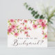 Belo cartão de apresentação de uma dama de honra floral. Design com flores cor-de-rosa cereja floridas na frente e "serás a minha dama de honra" em roteiros de tendências. Personalize com sua mensagem na parte traseira do cartão.