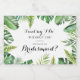 Este rótulo de vinho espumante de uma proposta de marcenaria tropical é perfeito para um casamento moderno. A design apresenta palma verde de cor d'água pintada à mão e folhas de bananeira bem organizadas em belos buquês. Mude o texto para pedir a todos os membros do seu partido noivo.