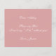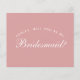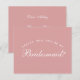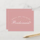 É apenas texto branco em um fundo rosa poeira (rosa), uma cor moderna e popular para os vestidos das damas de honra. A palavra Dama de Honra na frente e a mensagem no verso são escritas em uma fonte caligráfica elegante, o texto arqueado "[Nome] você será minha" acima da palavra Dama de Honra em letras maiúsculas pequenas.