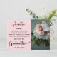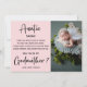 Peça a sua irmã, prima ou melhor amiga para ser a madrinha do seu filho com este cartão com fotos. Cartão moderno único, com 2 fotos, roteiro de caligrafia, sua mensagem em um fundo rosa brilhante.