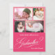Carteira de proposta madrinha de colagem fotográfica colorida moderna. Design apresenta 4 fotos do bebê em fundo rosa e cereja, roteiro de tipografia ''você será minha madrinha'' em letras brancas de tendências. Personalize ainda mais com o nome da madrinha e o nome do bebê.