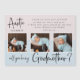 Carta de proposta de madrinha de colagem de fotos moderna. Design mostra 3 fotos do bebê, script de tipografia, você será minha madrinha em um fundo azul e púrpura pastel.