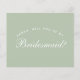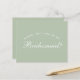 É apenas texto branco em fundo verde sage (uma cor moderna, popular para os vestidos das damas de honra). A palavra Dama de Honra na frente e a mensagem no verso são escritas em um elegante roteiro caligráfico, o texto arqueado "[Nome] você será minha" acima da palavra Dama de Honra em letras maiúsculas pequenas.