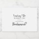 Esta proposta moderna de madrinha de vinho espumante é perfeita para um casamento rústico. O design simples e elegante apresenta a tipografia de scripts clássicos e ricos em preto e branco. Mude o texto para pedir a todos os membros do seu partido noivo.