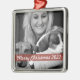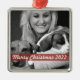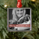 Um ornamento de fotos de feriado moderno com uma banda vermelha translúcida. A saudação e o ano da fonte do script podem ser facilmente personalizados para um toque pessoal. Esta é uma design moderadora, minimalista e contemporânea para se destacar nesta época de férias! A imagem mostrada é apenas para fins de ilustração para ser substituída pela sua própria foto. A imagem marcante é de uma mulher loira com dois Beagles dormindo. Crie uma memória todos os anos com uma nova imagem para uma adorável guardiã. Por favor, envie-me uma fotografia e criarei um ornamento personalizado para um presente verdadeiramente único.