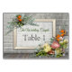 Protea branca gigante, melada ou arbusto-de-açúcar-rei, com uma flor estética de estrelitzia, com um solteiro - número e cartões de nome para cada mesa