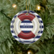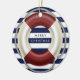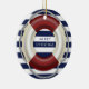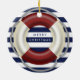 Enfeites de natal náutico personalizado com salva-vidas, fundo branco e azul e texto personalizável Feliz Natal