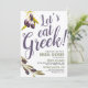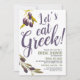 Celebre seu Chá de panela e futuro matrimônio lançando um evento de provando comida ao estilo grego. Permitam que todos se socializem enquanto provando os melhores e mais populares pratos da cozinha grega. O presente convite inclui os ramos de oliveira que delimitam o lado com a menção "vamos come grego" para o centro. Todos os elementos do convite são desbloqueados e personalizáveis Incluindo a frase em negrito "vamos come grego".