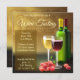Se você está planejando uma Festa de Provando de Vinho, Celebração de Vinho e Queijo, Partido Cocktail, ou qualquer ocasião especial envolvendo vinhos deliciosos, este cartão elegante é o certo para você. O texto é totalmente personalizável e você pode adicionar informações adicionais na parte traseira. Os seus convidados ficarão impressionados com a elevada qualidade e a forte impressão a cores das garrafas de vinho tinto e branco, uvas e vinhas no fundo.