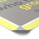 poster de quadrado inspiracional com texto de citação provérbio budista em cinza e amarelo.