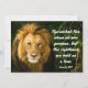 Escritura de citação inspiradora e oração personalizada de uma carta plana retrata uma fotografia de vida selvagem de um leão incrível. Apresenta uma parte encorajadora da Bíblia Verse Proverbs 28:1, "Os malvados fogem quando não estão perseguidos, mas os justos são ousados como um leão." O verso e a oração podem ser personalizados para os detalhes de sua escolha.