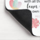 Computador mousepad com o verso Bíblia nele, "Confie no Senhor com todo o seu coração e não se incline ao seu próprio entendimento." - Provérbios 3:5. Feminina com flores e folhas em estilo aquoso.
