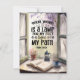 Uma placa de saudação plana com a escritura de aspas inspiracionais mostra uma mesa com uma Bíblia aberta em frente a uma janela. Ele apresenta uma Bíblia encorajadora Verse Psalm 119:105, "Sua palavra é uma lâmpada para meus pés, uma luz no meu caminho." A saudação, a oração pode ser personalizada ou excluída para uma mensagem manuscrita.