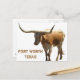 O cartão postal Ft Worth Longhorn apresenta uma fotografia original tirada durante o transporte diário de gado através dos estacionários. Este cartão temático animal personalizado faz um excelente de lembrança da viagem ou férias para Ft Worth, Texas.