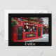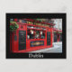 Cartão postal do famoso pub vermelho com as cestas de flores penduradas no distrito de Temple Bar, em Dublin, a capital da Irlanda com uma fronteira negra e o texto "Dublin". com