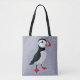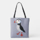 Puffin Design Tote Bag com cor de fundo personalizável.