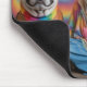 A mousepad featuring three pugs dressed like hippies with a psychedelic background.