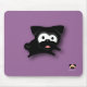 Um pug preto scampers através de um campo do roxo neste mousepad bonito.