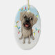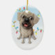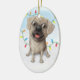 Enfeites de natal do puggle dos desenhos animados dos cães dos desenhos animados. Caracterizando lustre adorável uma mistura colorida do puggle (pug/lebreiro) em um fundo nevado cercado por luzes de Natal coloridas. Pendure de sua árvore de Natal por uma época natalícia temático do cão ou do puggle.